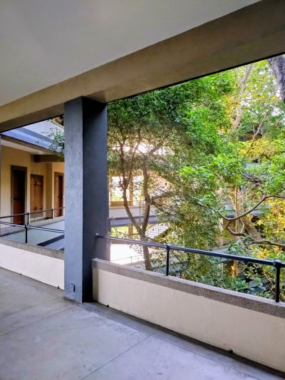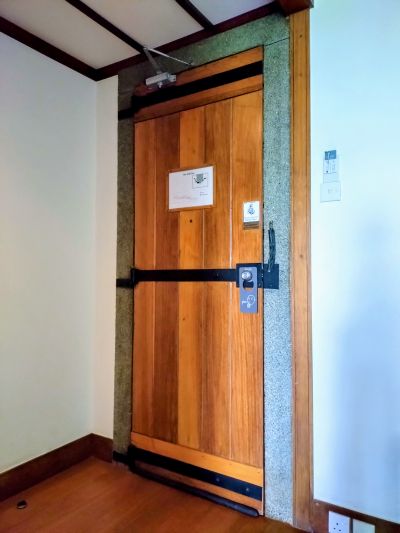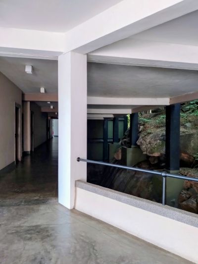 これだけ屋外・屋内があいまいな建物なのに、ものすごく清掃が行き届いて整っている(清潔、というより整っている、という方がしっくりくる)一時的に落ち葉が廊下に落ちていたりすることもあるが、ものすごくマメに掃除しているので、例えるならば毎朝掃き清められているお寺の庭に落ち葉がある、みたいな感じである。