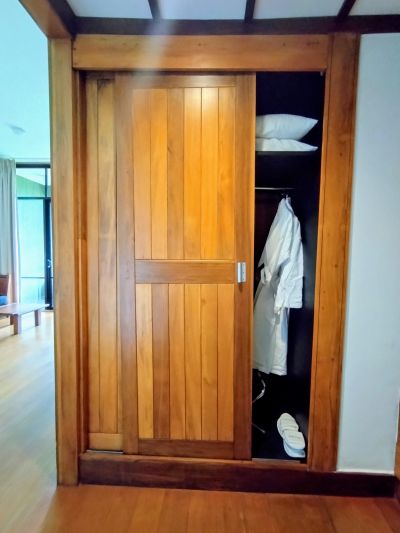 このクローゼットをバスルーム側から見るとこうなるのである。そう、バスルーム側から直でクローゼットにアクセスできるのだ!これ超便利!(お風呂側は左の扉しか開かない)すごい!としびれた一コマである。