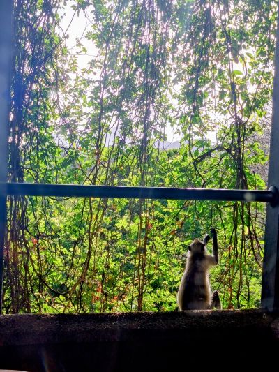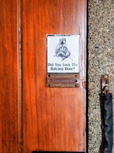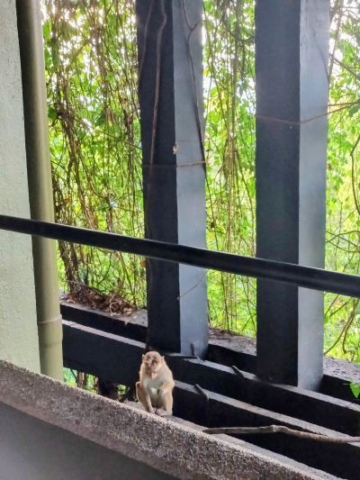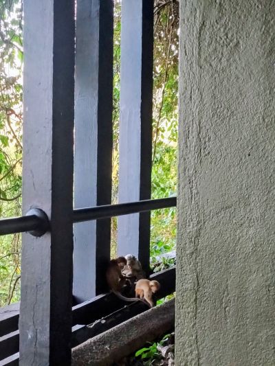 で、注意すべきはサルである。とにかくそこら中に居て部屋のテラスも絶対鍵をかけないとダメなのだが(サルが扉を開けてしまう)この館内移動中も油断してはならない。