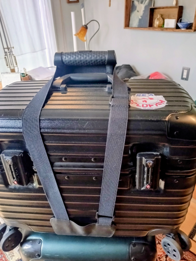 ちなみにこのでっかい方のスーツケースの上にのせて固定してるベルトは「キャリーケースバンド」という名称でスリーコインズで550円で販売している。この手のベルトをネットで結構探したけど、このスリコのがかなりいい感じ。