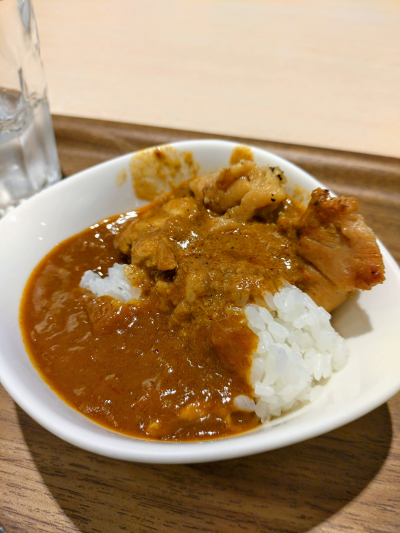 ご飯を軽く盛って2種類のカレーあいがけで食べ比べ(その上に別フードのチキンをON)サクララウンジのJALビーフカレーも美味しいんだけどもう何度も食べてるし、どちらかというとスパイスきいたカレー好きなので、このカレーが地味に気に入ってしまった。