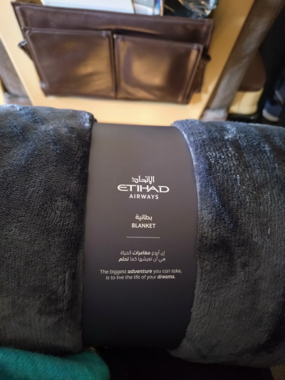 もう記憶が怪しいのだが自分のメモに「機内は寒い」とメモがあったので寒かったのだと思う(機内あるあるだが)長袖Tシャツの上にダウンを羽織り、アメニティの毛布を掛けてすごした。正直寒さよりもフットレストが出せずにいまいち足元が落ち着かなかったのと、ヘッドレストがストレスで(行は背中にクッション挟む方式をとっていなかった)そっちにばかり神経が行っていたと思われる。