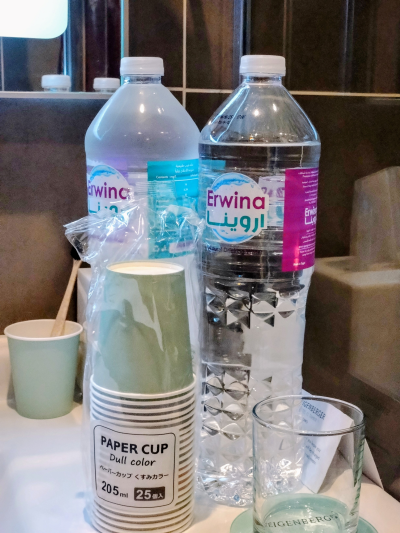毎日ペットボトル2本補充されるとはいえ、歯磨きのすすぎもミネラルウォーターでしたいとなるとお水は足りない。ホテルでも売ってるかもしれないが割高だと思うので、私はホテルのすぐ向かいのお店で買っていたので、そちらも書いておく(ちょっとした注意事項もある)