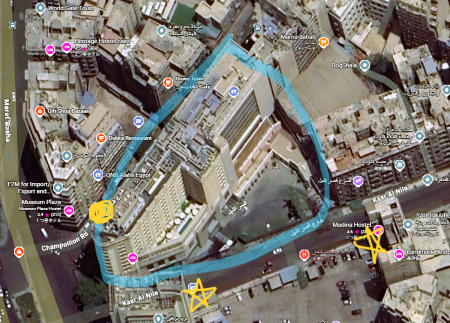 目の前にカイロ考古学博物館があるので行く予定にしてる人には近くて便利だが、横断歩道がなくガンガン来る車をかいくぐって辿りつかないといけないので、想像の倍は時間がかかると思っていたほうがよい(エジプトは基本歩道がないし、歩行者優先の意識もない)